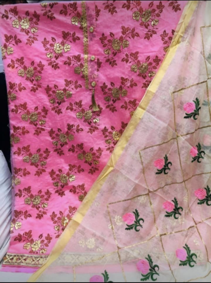 ▪ Dupatta: CHANDERI EMBROIDERY  WORK Cut:- 2:10